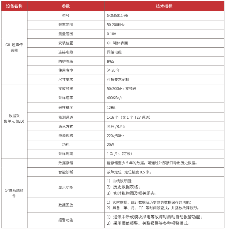 (1)GIL 超聲傳感器:接收電弧故障信號,將聲波信號轉換為電信號,實時接入到采集單元。