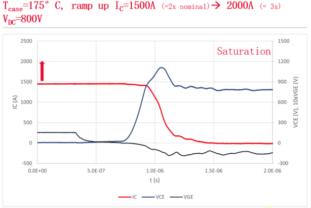 在最新測試中,以i20 IGBT芯片為核心的模塊產品,自1500A(模塊額定電流750A的2倍)開始,在超過2000A(接近額定電流的3倍)時仍然穩定工作,表現出了極佳的安全性、耐用性。