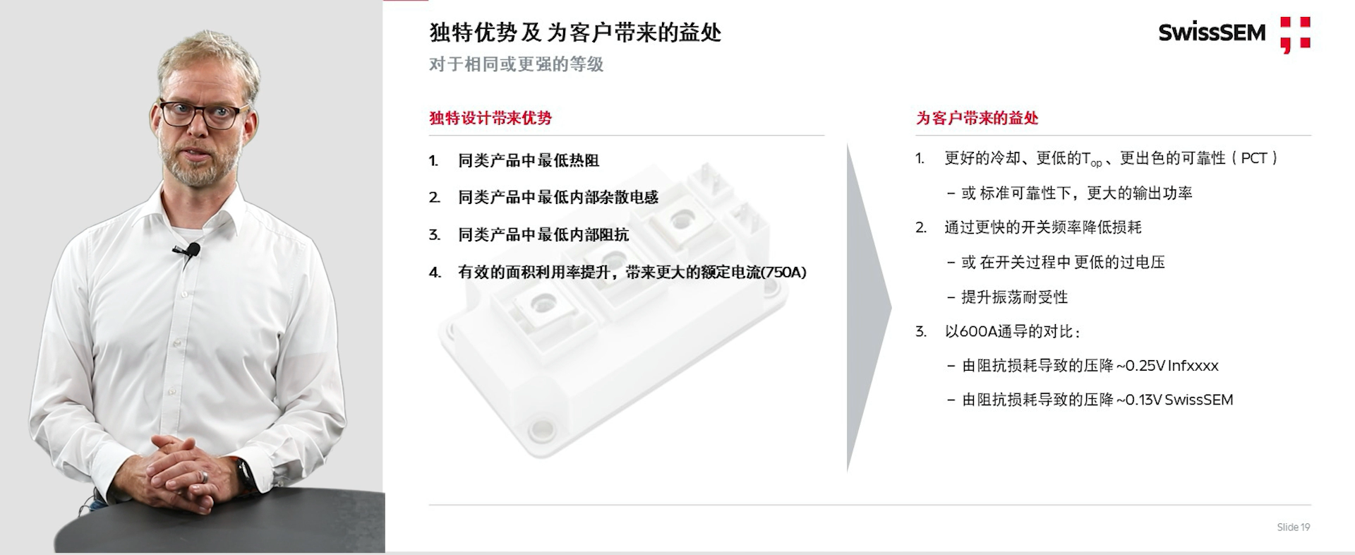 論壇上,沙龙365国际网站科技瑞士子公司SwissSEM首席運(yùn)營(yíng)官Sven先生,通過(guò)視頻的方式發(fā)表主題報(bào)告“工業(yè)級(jí)和車(chē)規(guī)級(jí)IGBT的創(chuàng)新與突破”。介紹了沙龙365国际网站i20 IGBT芯片組、ED封裝IGBT模塊的優(yōu)勢(shì)及特點(diǎn),并首次發(fā)布了面向新能源汽車(chē)領(lǐng)域的HEEV封裝SiC模塊,以及面向新能源發(fā)電和工業(yè)電控領(lǐng)域的ST封裝模塊。這是繼ED封裝IGBT模塊之后的又一力作,也是沙龙365国际网站在工業(yè)級(jí)與車(chē)規(guī)級(jí)IGBT領(lǐng)域的又一次創(chuàng)新與突破。