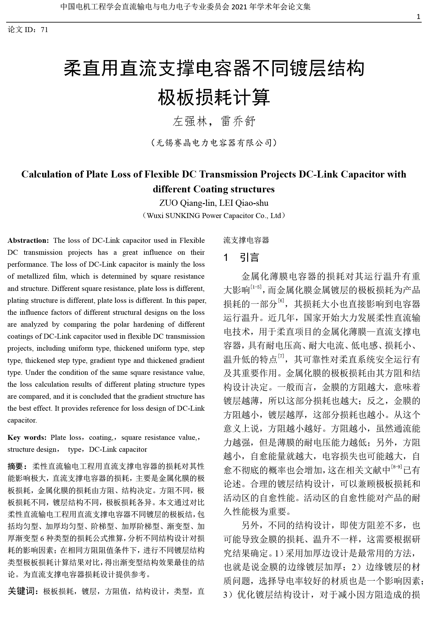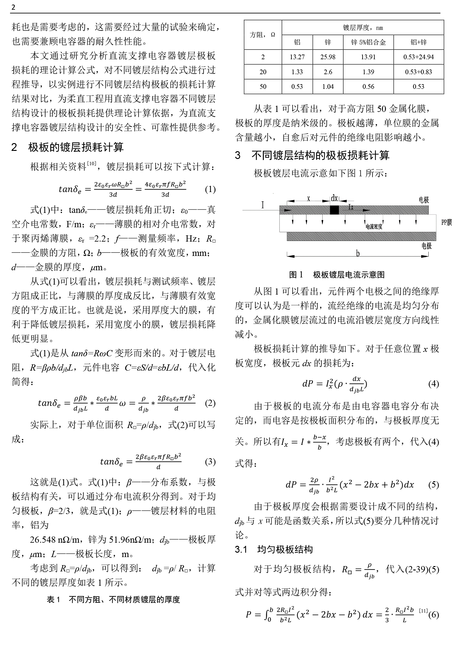 技術(shù)成果論文-柔直用直流支撐電容器不同鍍層結(jié)構(gòu)極板損耗計(jì)算